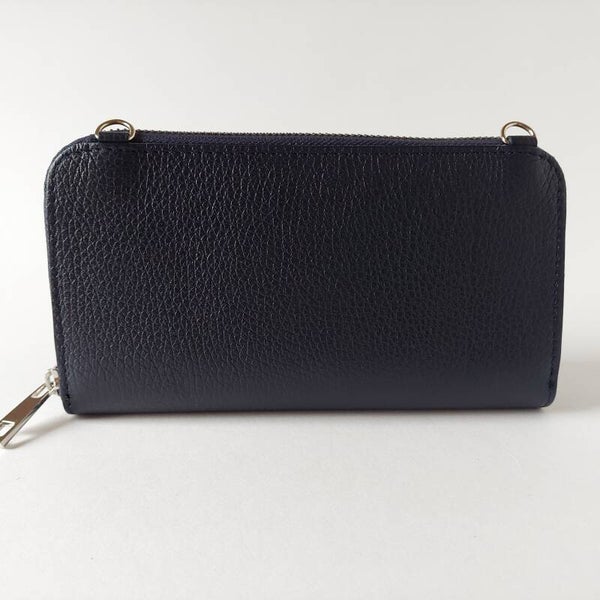 Crosbody portemonnee van echt leer in donkerblauw, met topkwaliteit afwerking. Ruim design met veel vakken en een extra voorvakje voor extra gemak. Perfect voor dagelijks gebruik met een stijlvolle uitstraling!
