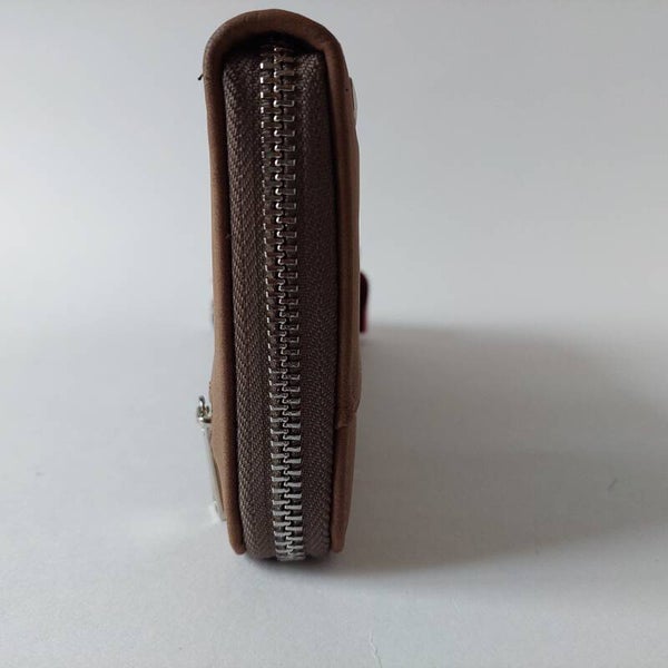 De portemonnee Michelle in bruine suède look biedt veel ruimte met vijf vakken voor al je kaarten, briefgeld en meer. Ruim en praktisch, deze grote portemonnee combineert stijl en functionaliteit voor dagelijks gebruik.