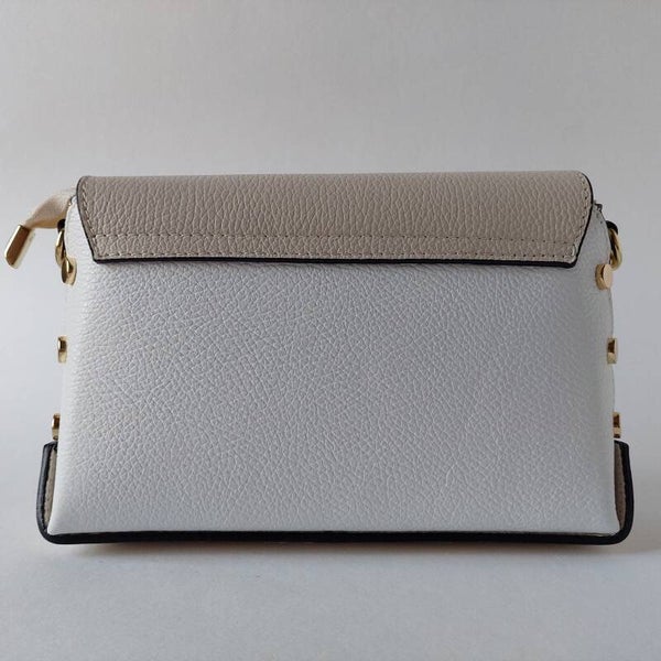 Deze handgemaakte schoudertas is een ware blikvanger, gemaakt van hoogwaardig echt leer in een stijlvolle wit/beige tint. Geproduceerd in Italië, staat de tas garant voor vakmanschap en exclusiviteit, met een beperkt aantal stuks beschikbaar. De tas is afgewerkt met verfijnde messing details en een elegante messing draaiknop sluiting, die niet alleen praktisch is maar ook een chique uitstraling geeft. Of je nu een avondje uitgaat of je dagelijkse look wilt upgraden, deze tas voegt een tijdloze luxe toe aan elke outfit. Een prachtige, exclusieve toevoeging aan je collectie!