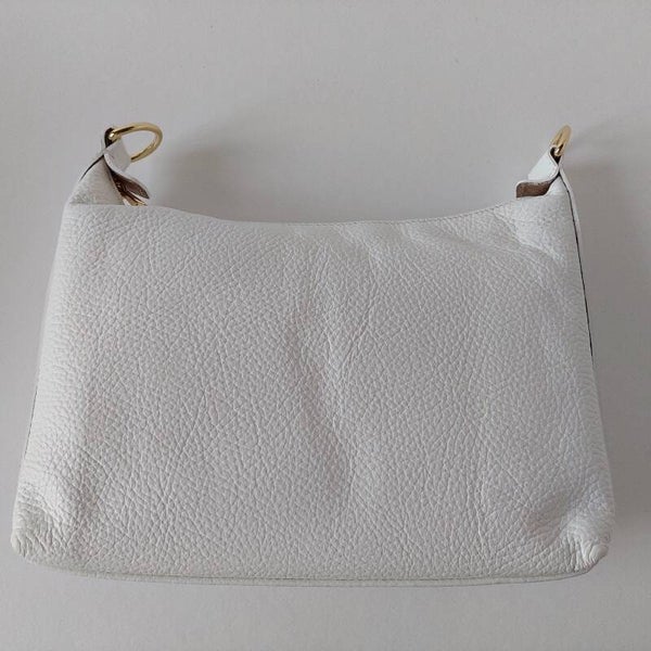 Deze witte schouder- en crossbodytas is handgemaakt in Italië van soepel echt leer, wat zorgt voor zowel luxe als comfort. De tas heeft een ruim interieur, ideaal voor al je essentials, en wordt geaccentueerd door verfijnde messing details voor een chique uitstraling. Perfect voor elke gelegenheid, biedt deze tas de perfecte mix van stijl, functionaliteit en Italiaanse vakmanschap.