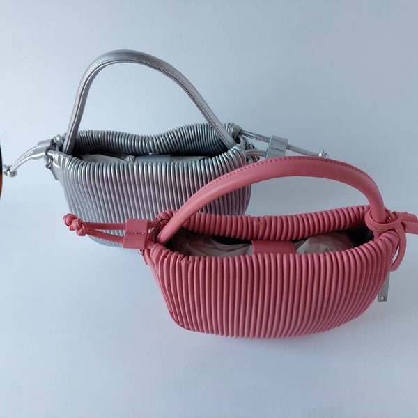 Vegan handtas - schoudertas - Bulaggi - zilver kleurig - zeer soepel materiaal - ribbel structuur - opvallend - handgemaakt