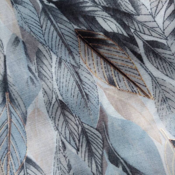 Deze prachtige sjaal in zwart, grijs en blauwe tinten is perfect voor de lente en zomer! Het elegante bladmotief voegt een frisse en natuurlijke uitstraling toe aan je outfit. Gemaakt van hoogwaardige viscose, is deze sjaal luchtig en comfortabel om te dragen, waardoor hij ideaal is voor warmere dagen. Met de grootste collectie in deze stijl, vind je zeker de perfecte sjaal die jouw look compleet maakt. Geniet van de kwaliteit en stijl die deze sjaal te bieden heeft!
