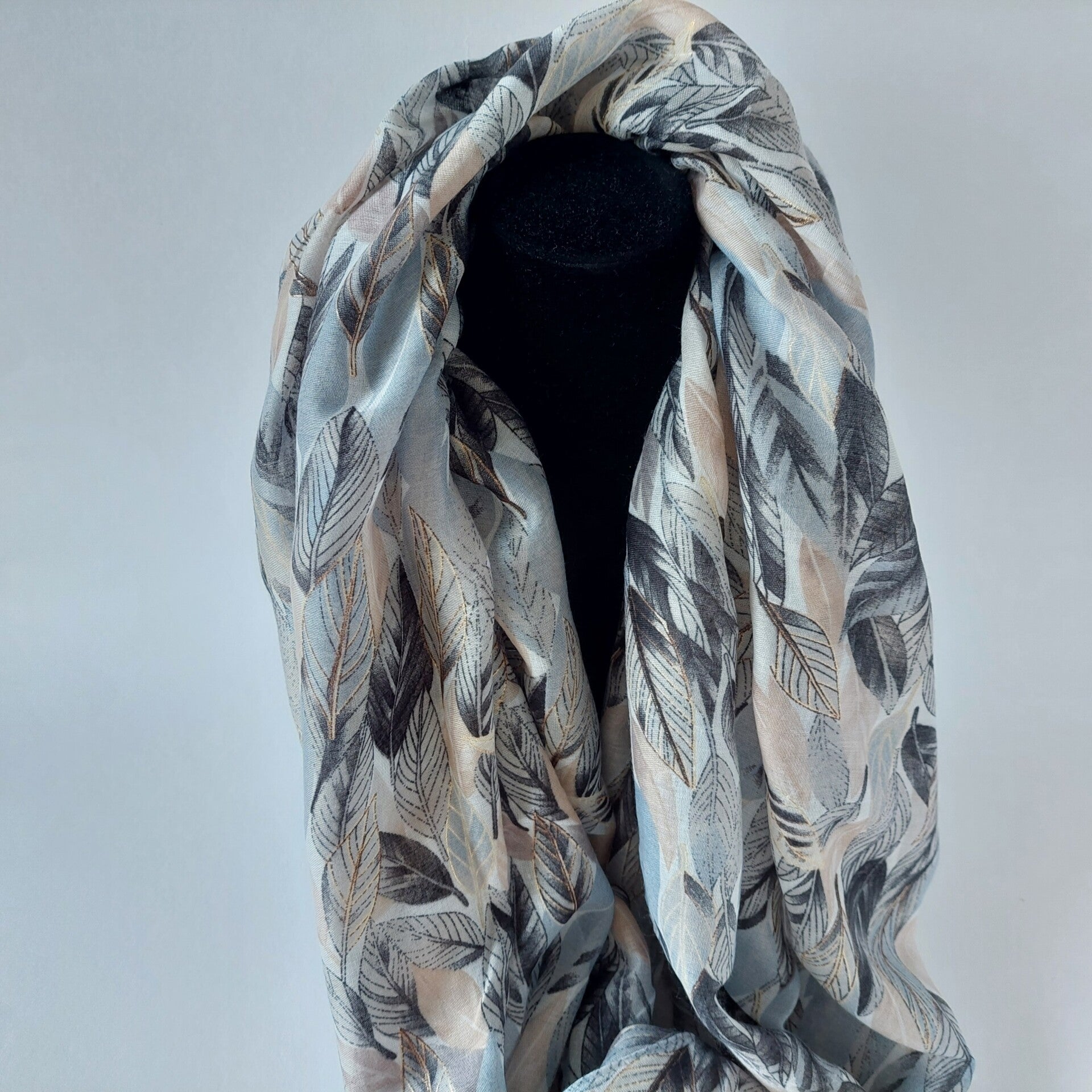 Sjaal zwart - grijs - blauw tinten - lente - zomer - blad motief - grootste collectie - viscose - luchtig - kwaliteit - top