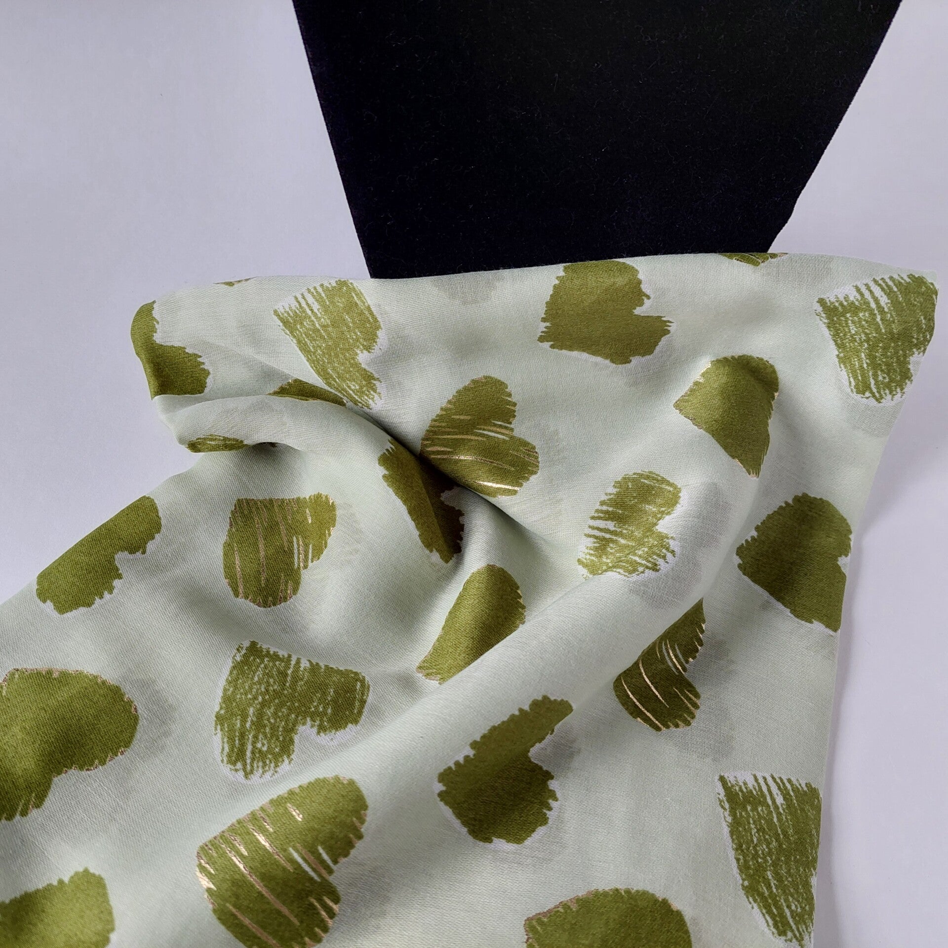 Hartjes motief Sjaal - groen - hartjes - kleine franjes - wit - vrolijke sjaal - viscose - katoen - grootste collectie sjaal in NL