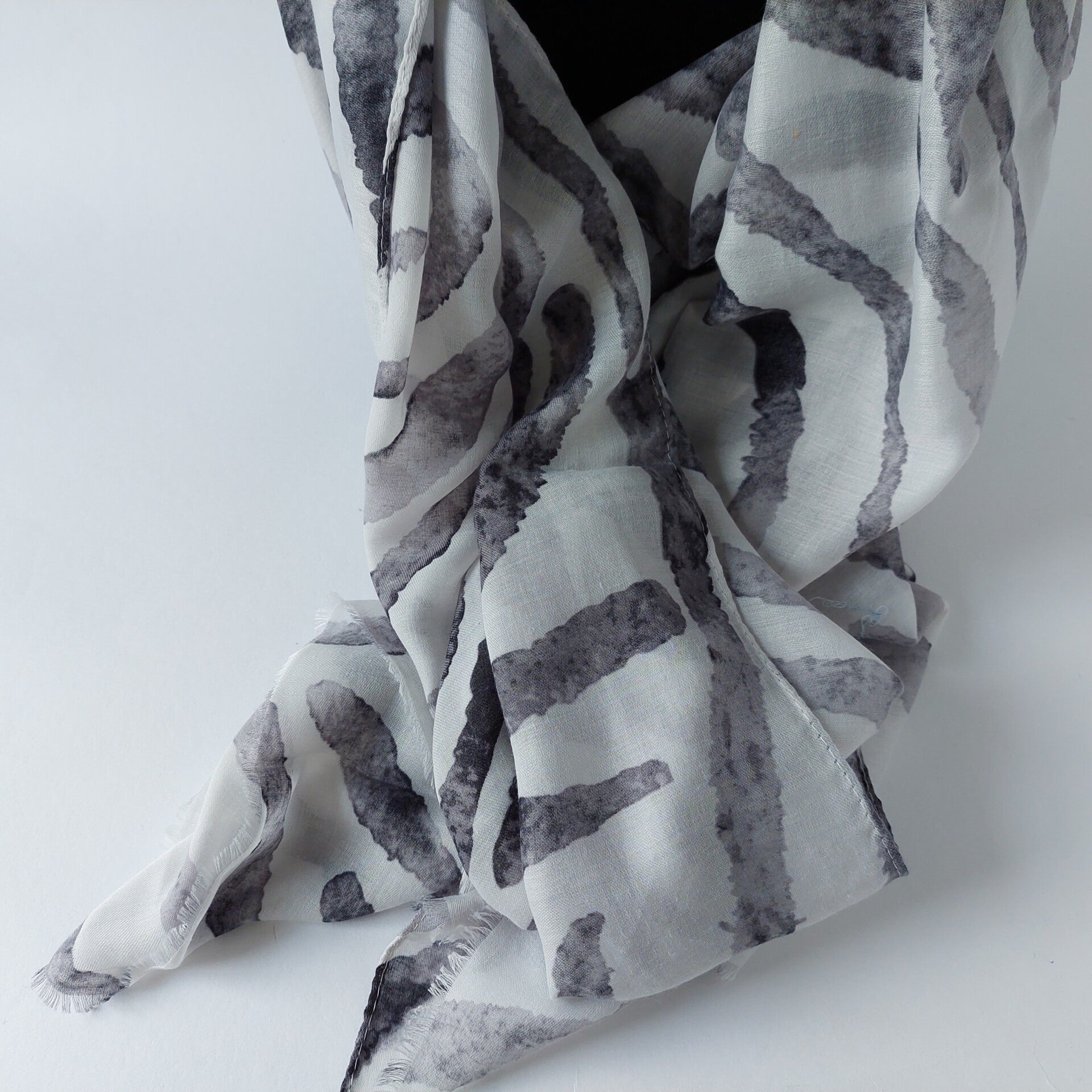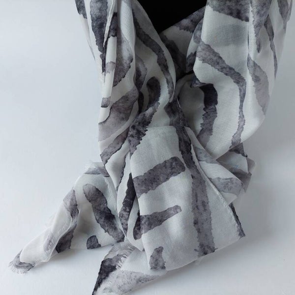 Zebra motief sjaal - grijs/wit - fantasie motiefje - franjes - viscose/katoen -