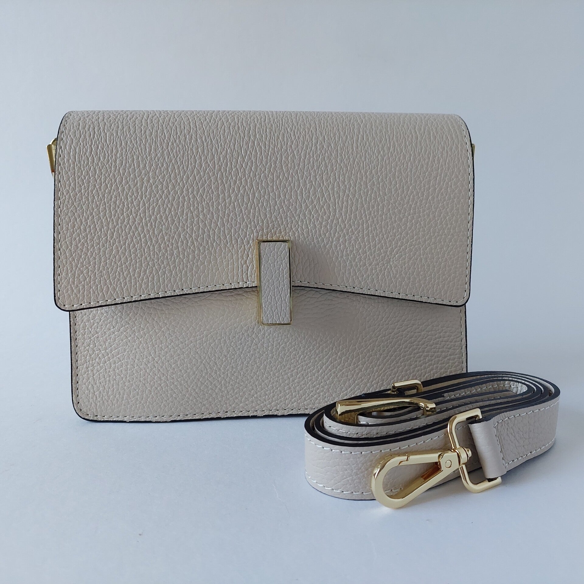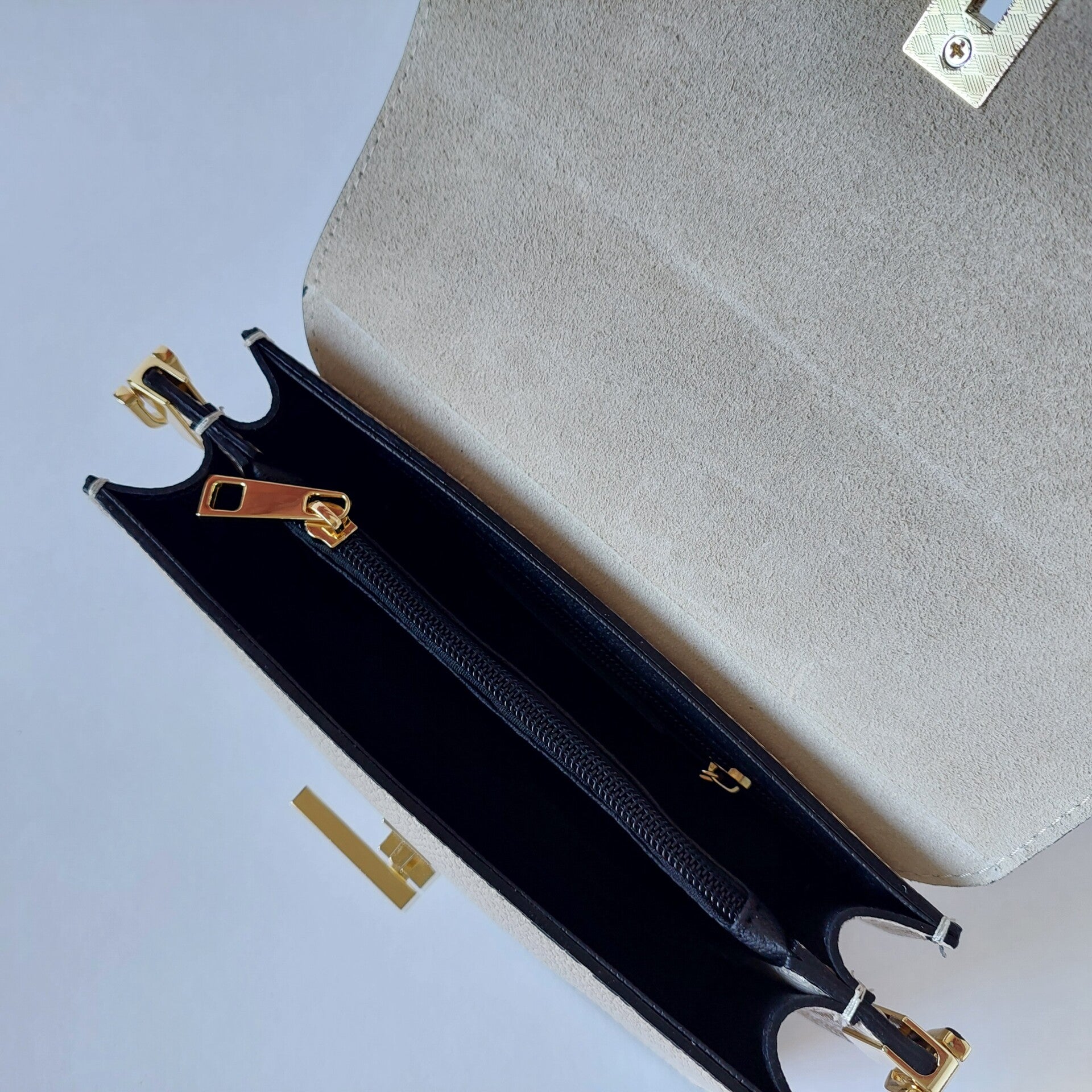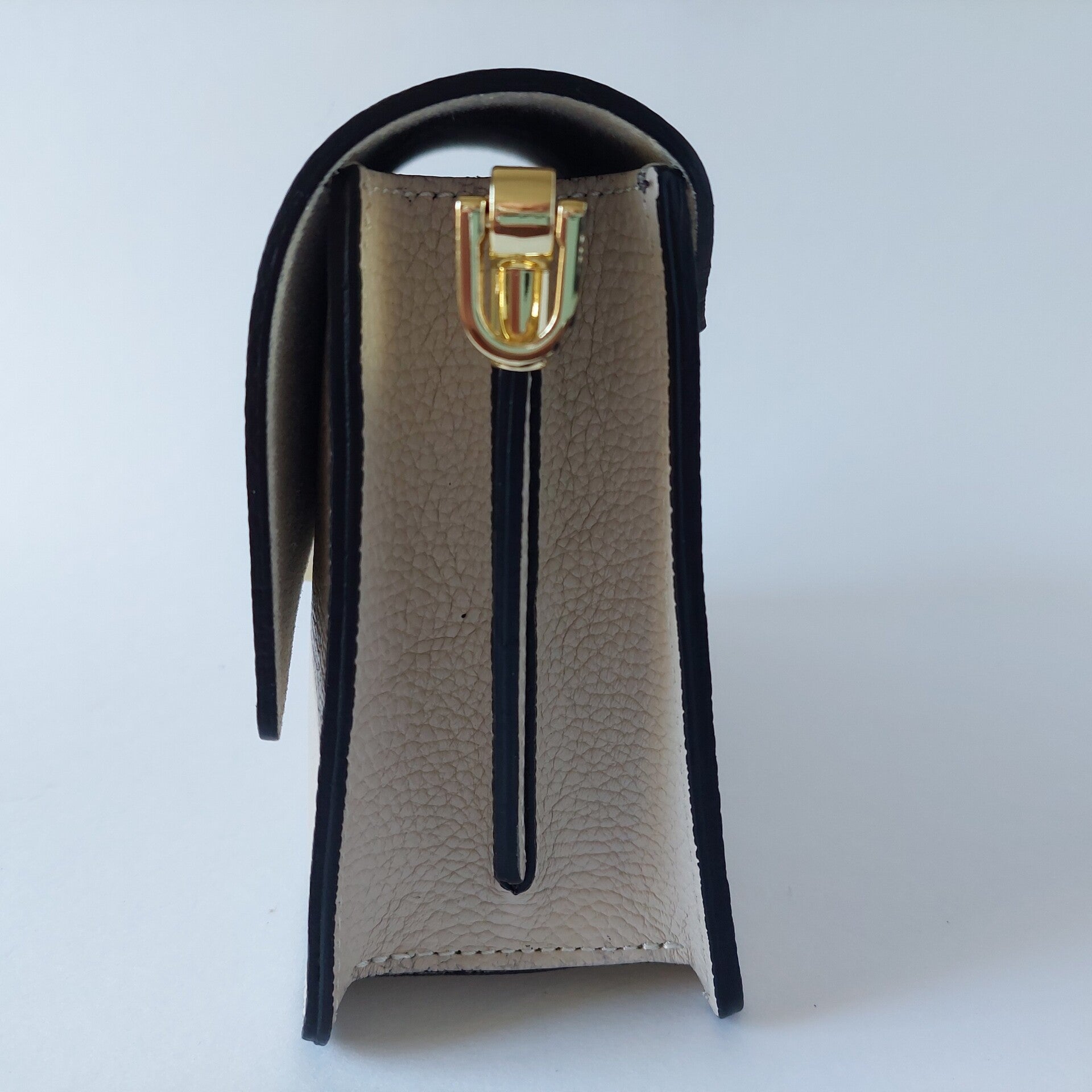 Luxe Crème Leren Damestas - zwarte afwerking – Handgemaakt in Italië - binnen kant omslag suéde - sier draaiknop - handmade