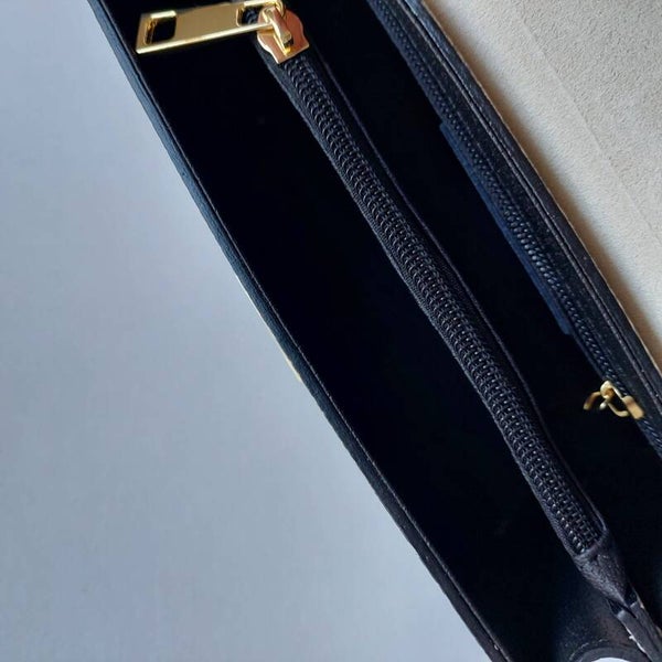- 3 grote vakjes waarvan 1 met rits, klein binnen vakje met rits