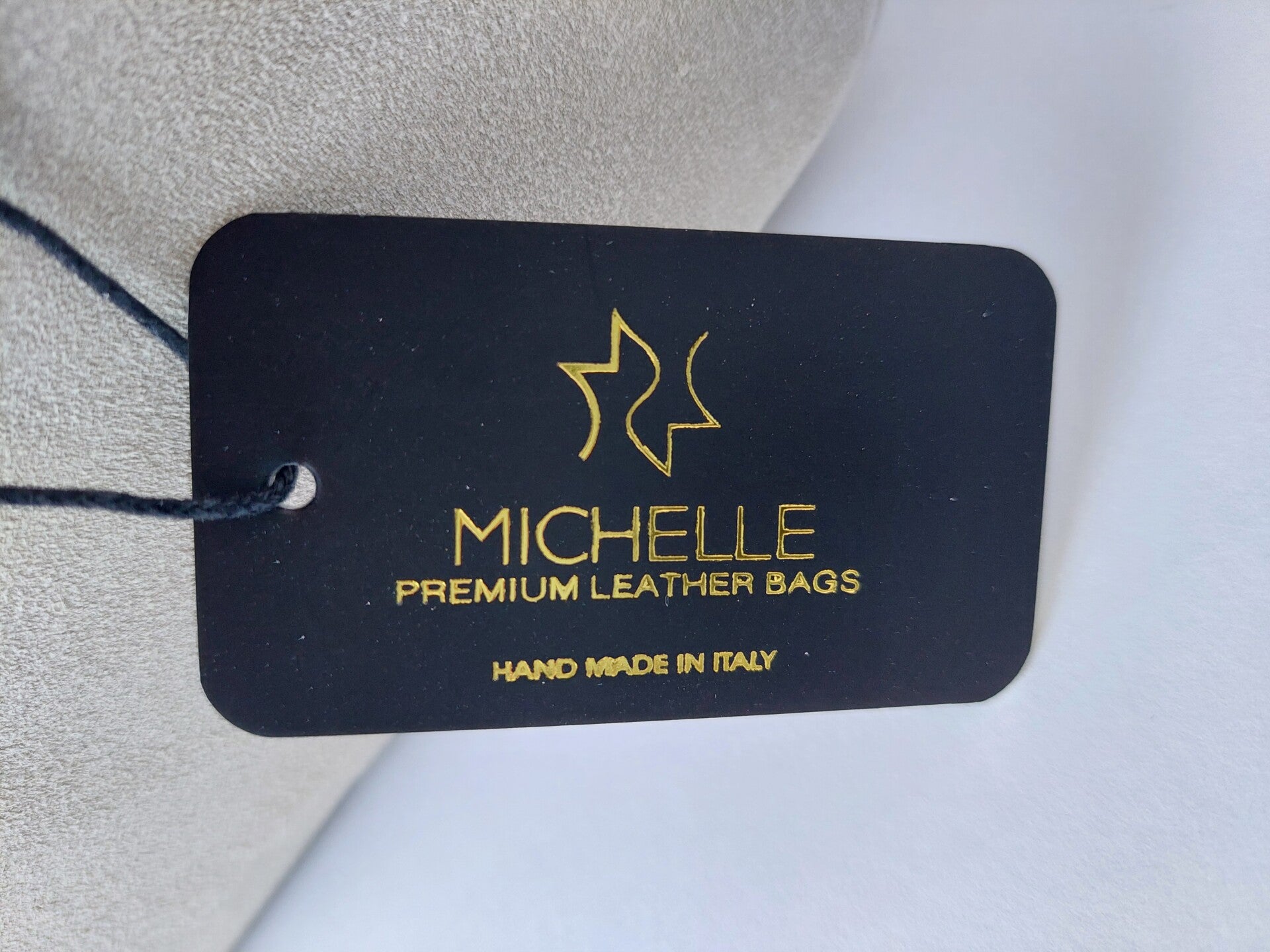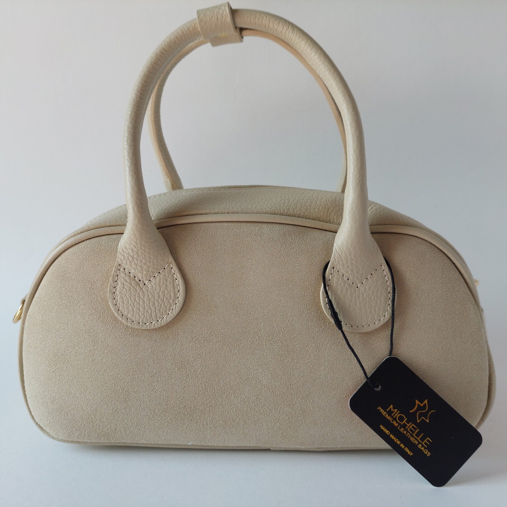 Stijlvolle dameshandtas van topkwaliteit, gemaakt in Italië van echt leer en suède. Deze lichtbeige tas van het merk Michelle is zowel als handtas en schoudertas te dragen. Perfecte combinatie van elegantie en duurzaamheid – ideaal voor elke gelegenheid.