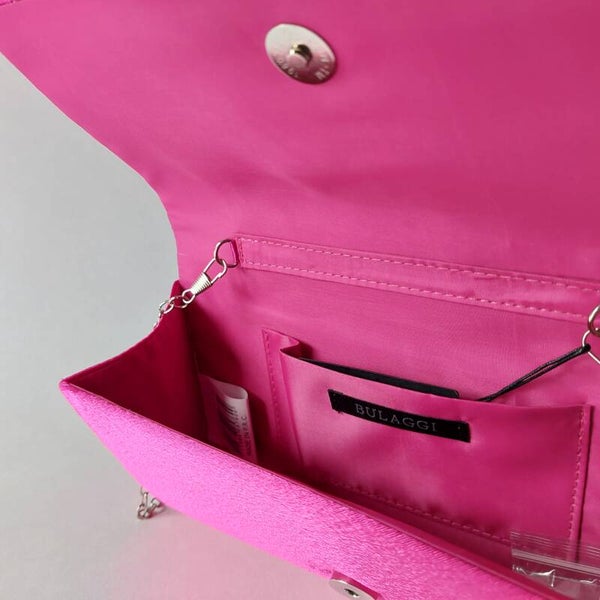 stijlvolle fuchsia clutch van satijn, perfect voor feestjes, bruiloften of gala’s. compact, elegant en ideaal als avondtas voor dames van het top merk BULAGGI.