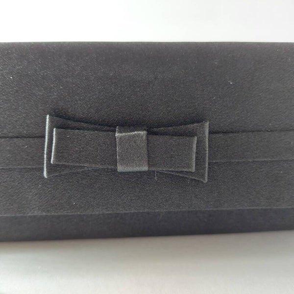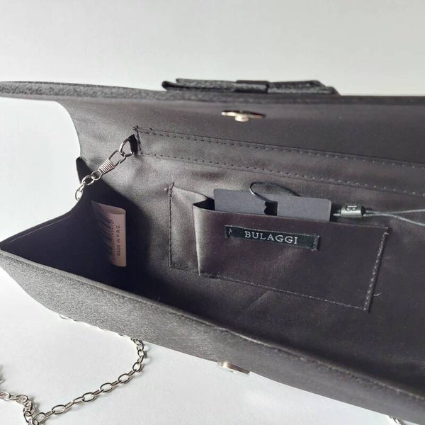 ontdek onze zwarte clutch in elegante envelopvorm, gemaakt van luxe satijnstof en afgewerkt met een subtiel strikje aan de voorzijde. perfect voor elke chique gelegenheid of avondje uit. deze compacte tas combineert stijl en functionaliteit en past moeiteloos bij jouw feestoutfit. shop nu uit de grootste collectie clutches en vind jouw perfecte match!