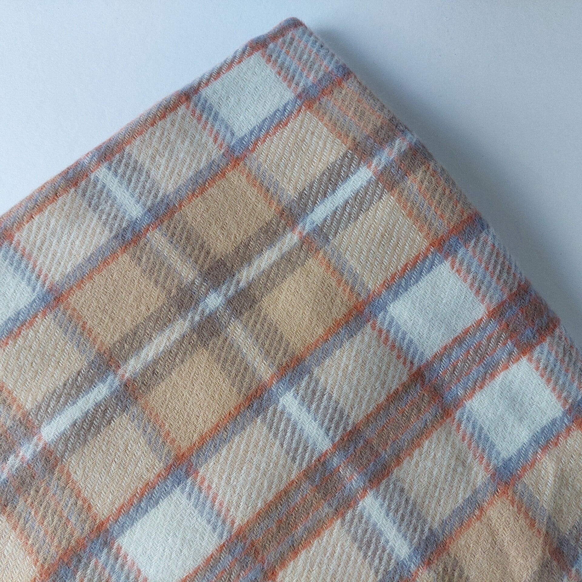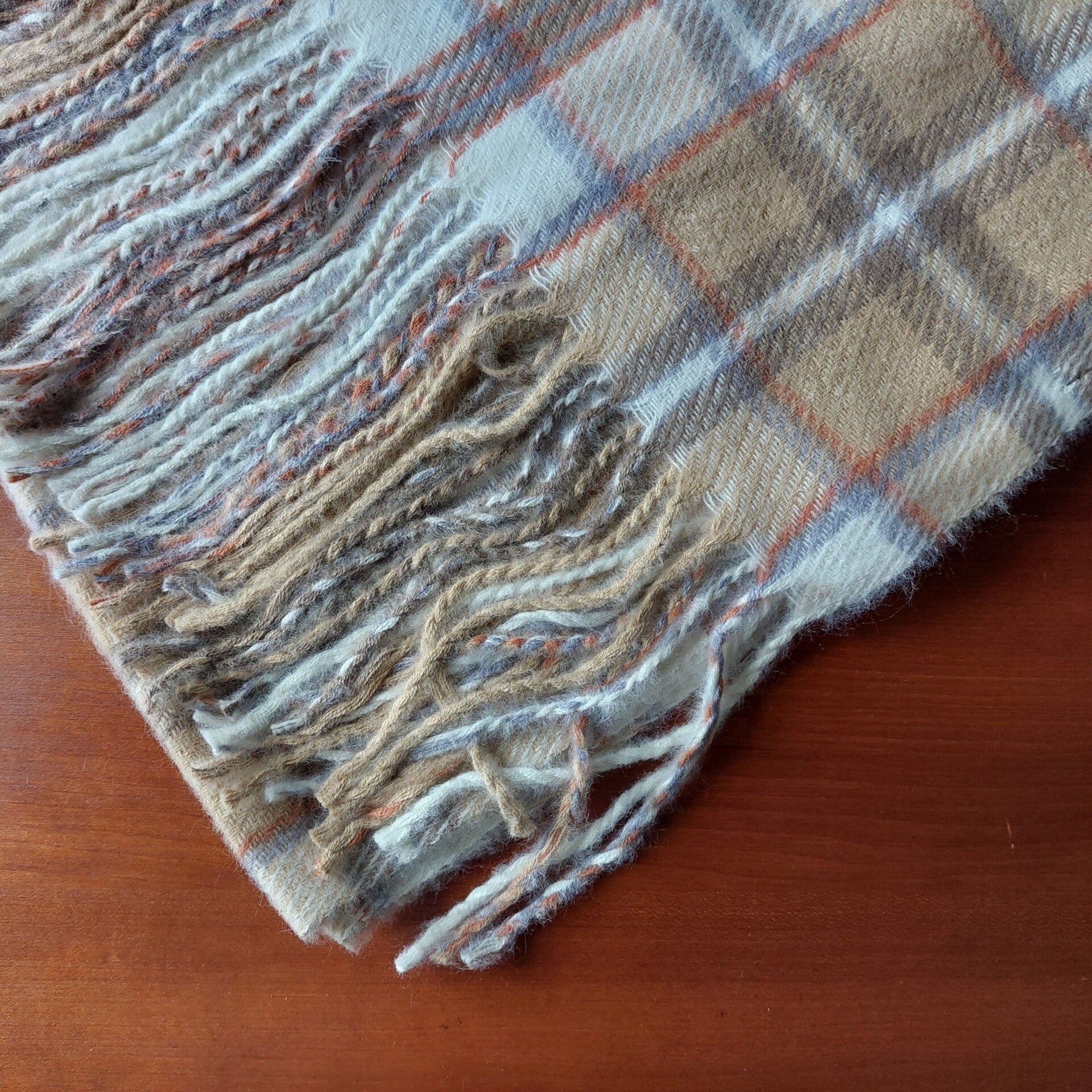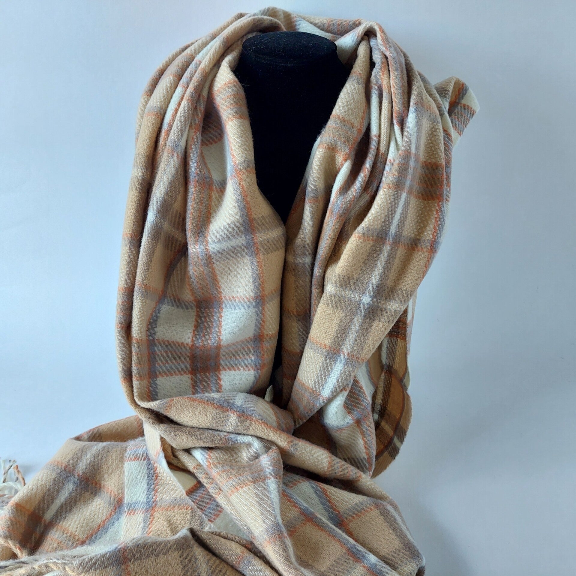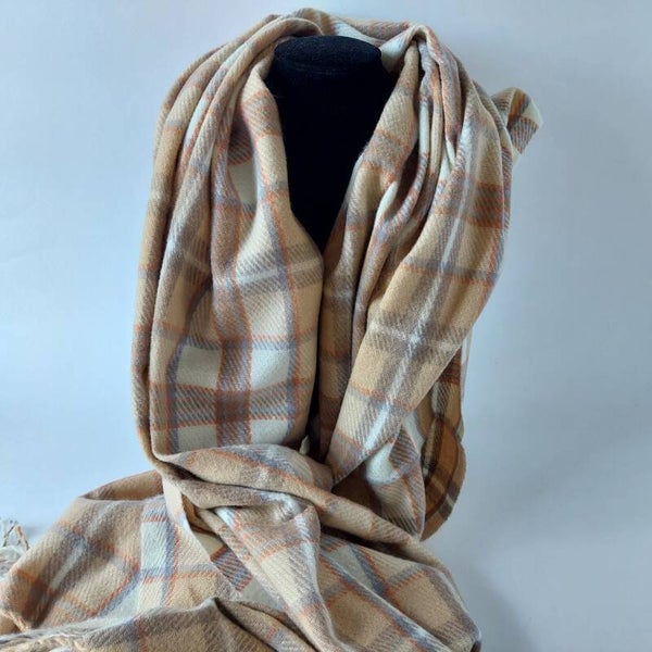 Sjaal dames winter - khaki van viscose met blokpatroon en franjes – stijlvol en warm