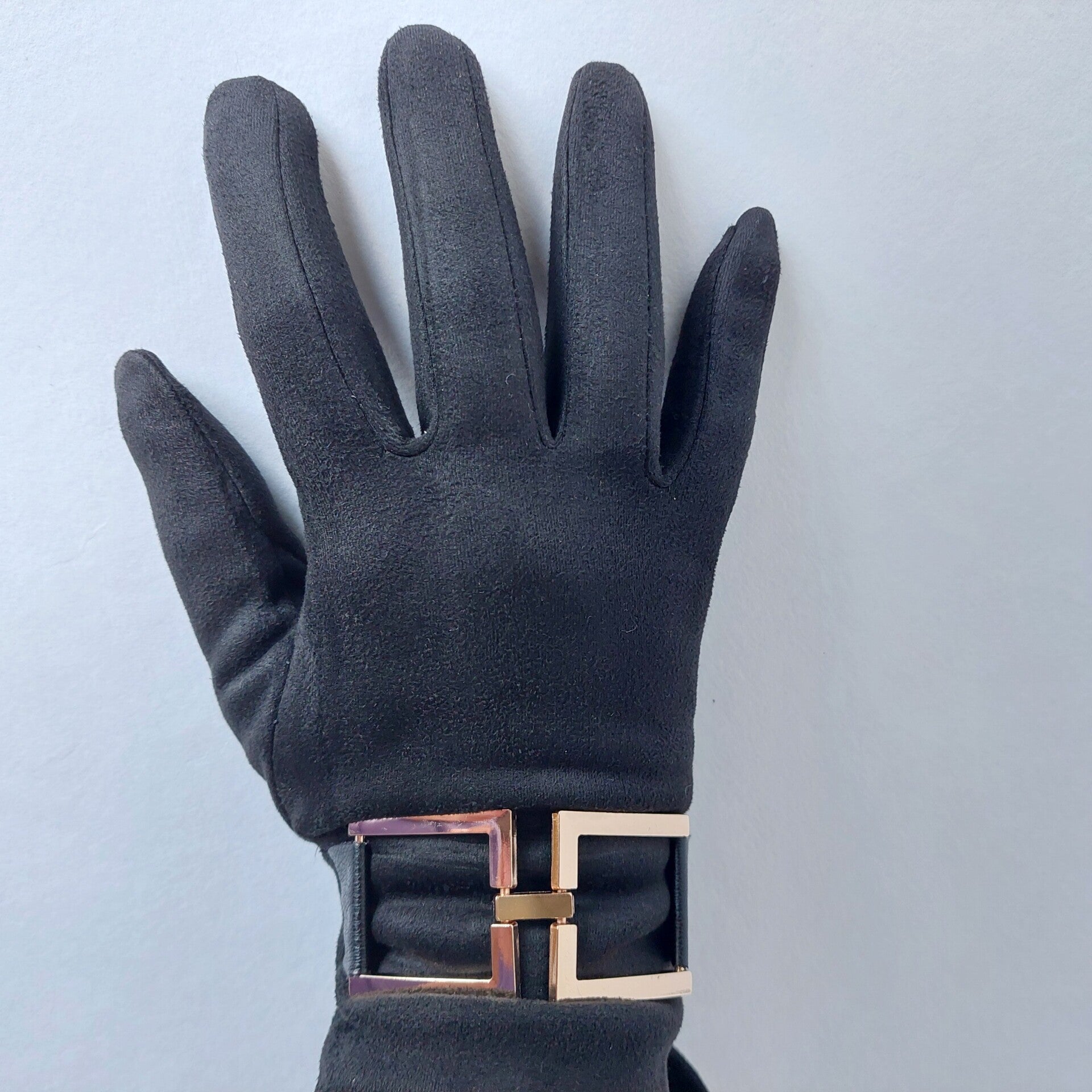 Zwarte dameshandschoenen – superzacht met luxe messing details, elegant & tijdloos - fluweel zacht - 1 maat