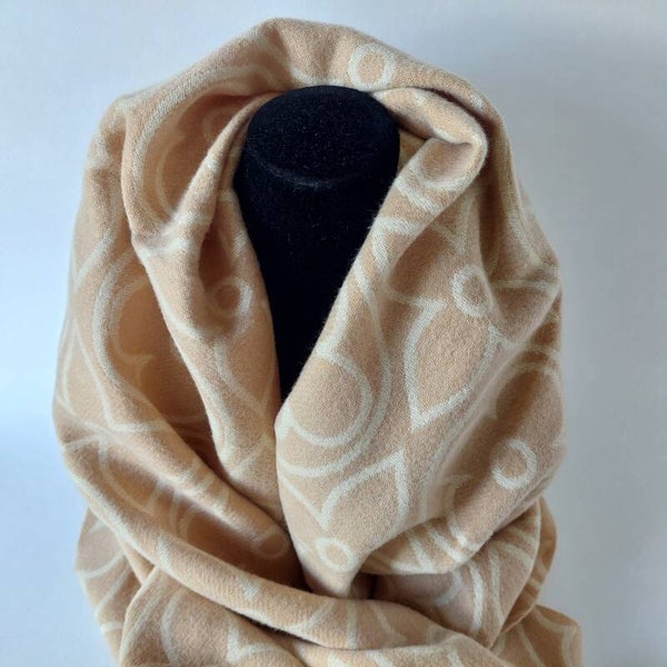 winter dames sjaal - mooie dikke stof - viscose - camel - bloem motief - grote franjes - snelle levering - draperen