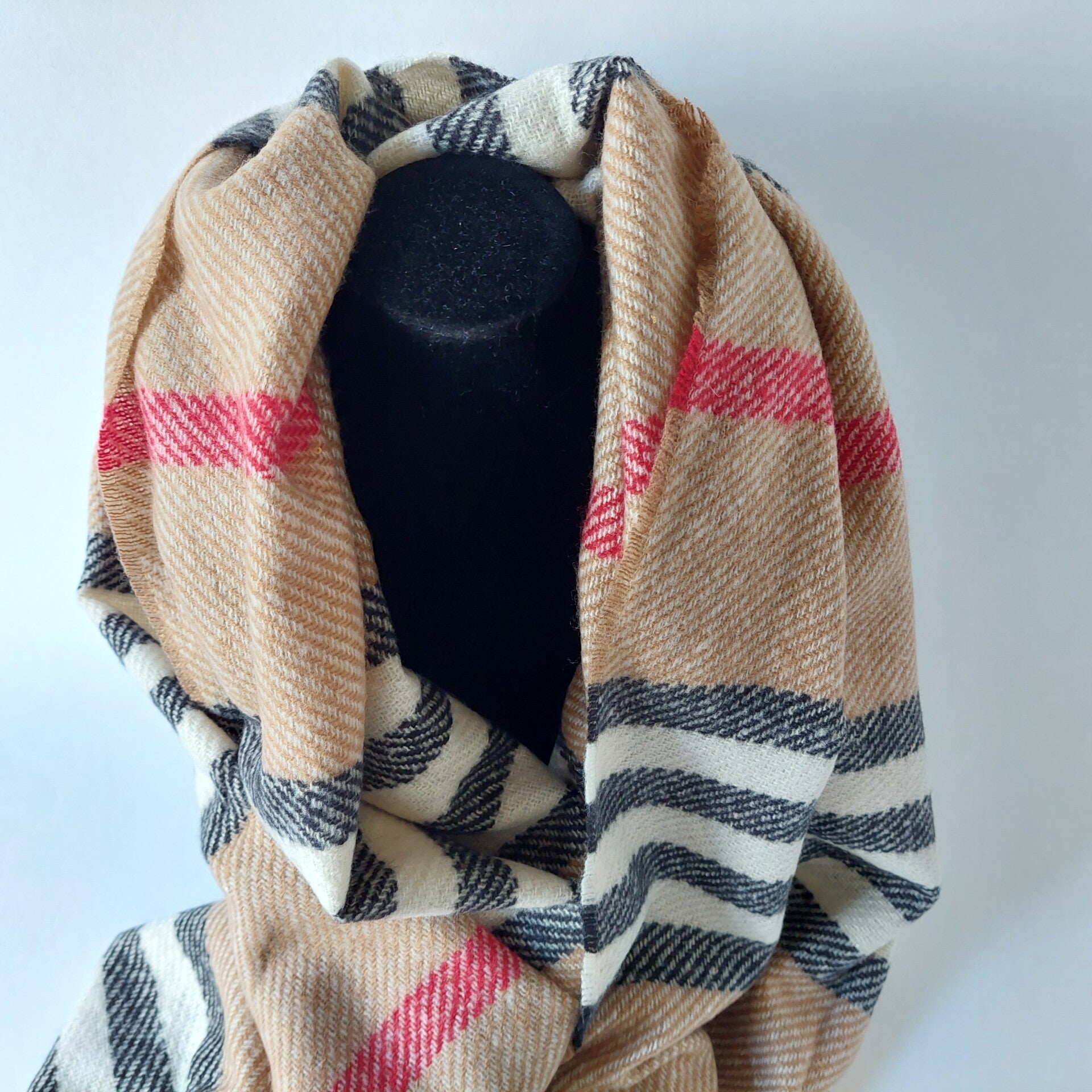 Burberry (look) sjaal voor dames - burberry kleuren - mooie stof - dikkere stof - franjes - verwerkt met subtiele lovertjes