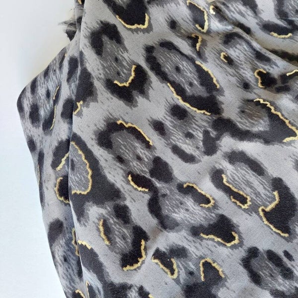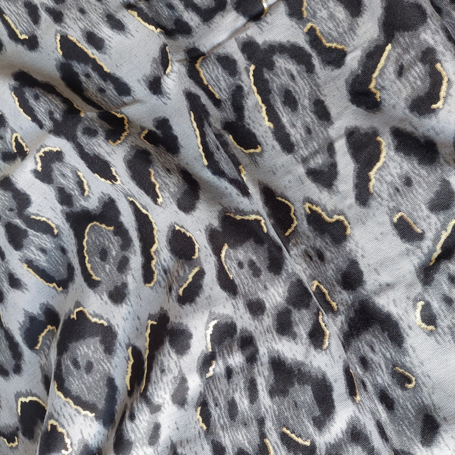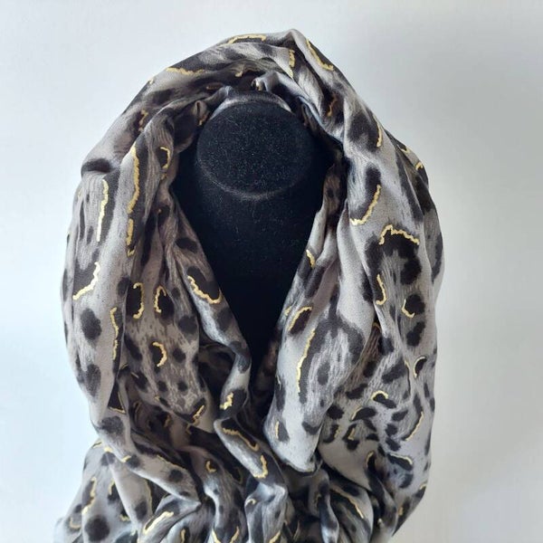 dames winter sjaal - creme/grijs/zwart - goud draad verwerkt - wolkjes motief - viscose/katoen - fijne stof - franjes