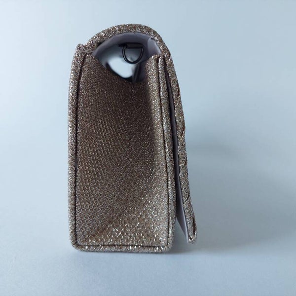 Clutch dames - champagne - glitter stof - magneet sluiting - zilveren ketting - bruiloft - feesten