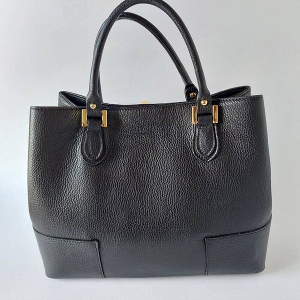 Deze zwarte leren damestas is een stijlvol en tijdloos accessoire voor vrouwen met oog voor kwaliteit. Handgemaakt in Italië van soepel en stevig leer, met verfijnde messing details en een unieke bamboe-look draaiknop sluiting.