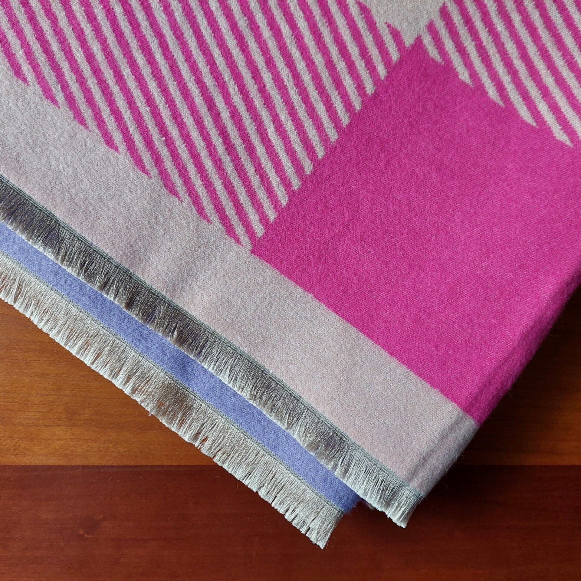 sjaal dames winter - blok motief - paars roze tinten - top kwaliteit - kleine franjes - zacht - dikke kwaliteit