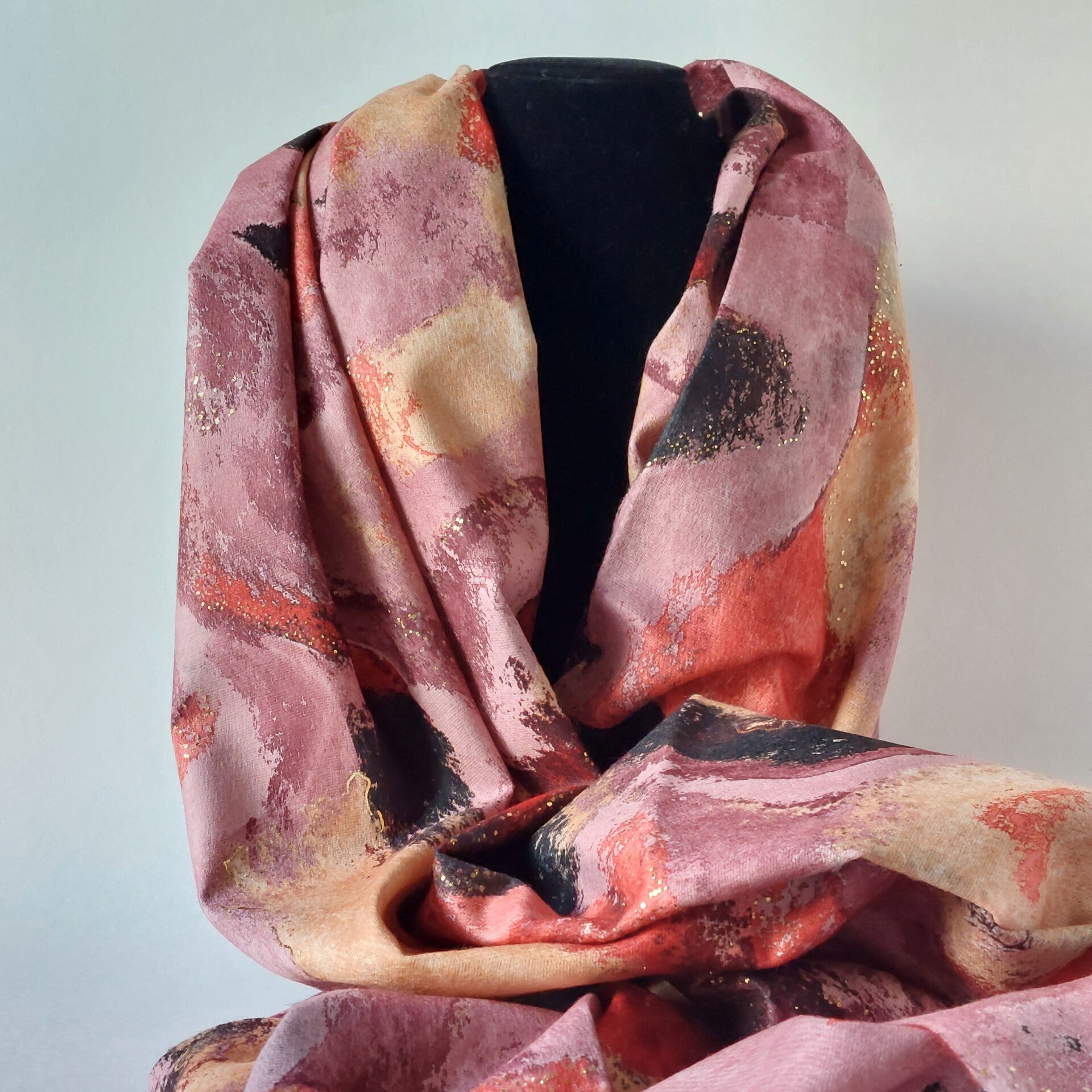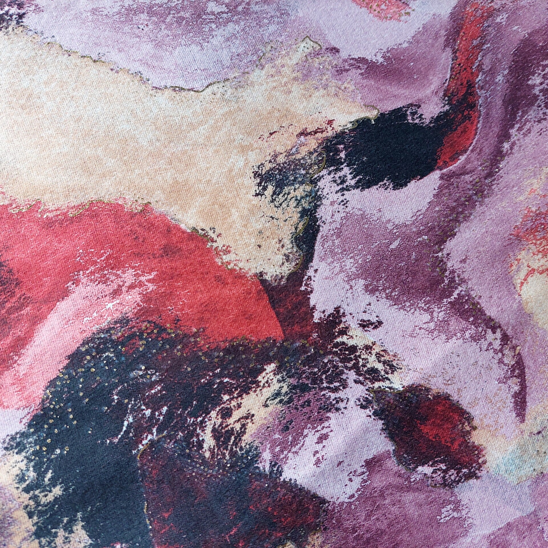 sjaal winter dames - paars/rood tinten - fantasie print - luxe stof - super zacht - hand gesneden stof - hand made - opvallend - snelle levering - goud opdruk