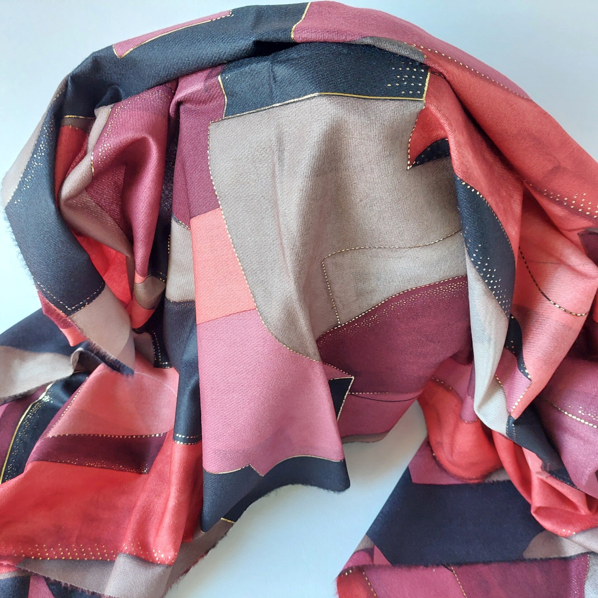 winter sjaal dames - fantasie motief - multi color - viscose - zachte stof - luxe - opvallende sjaal - kleine franjes - hand gesneden stof