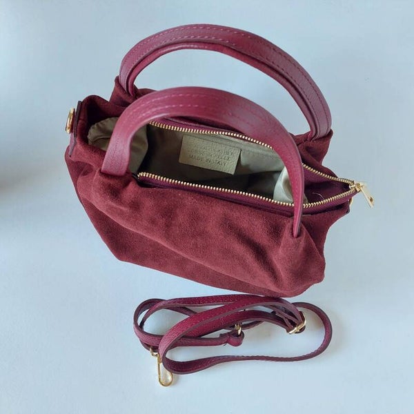 Bordeaux schouder - hand tas - soepel suède - losse band - Italië - Borse in Pelle - top kwaliteit - handmade