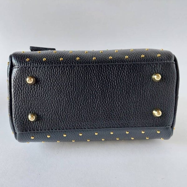Zwarte leren tas met messing knopjes afgewerkt - hand gemaakt - Italië - met sleutelhanger versiersel - top kwaliteit - onderzijde vier messing knopjes