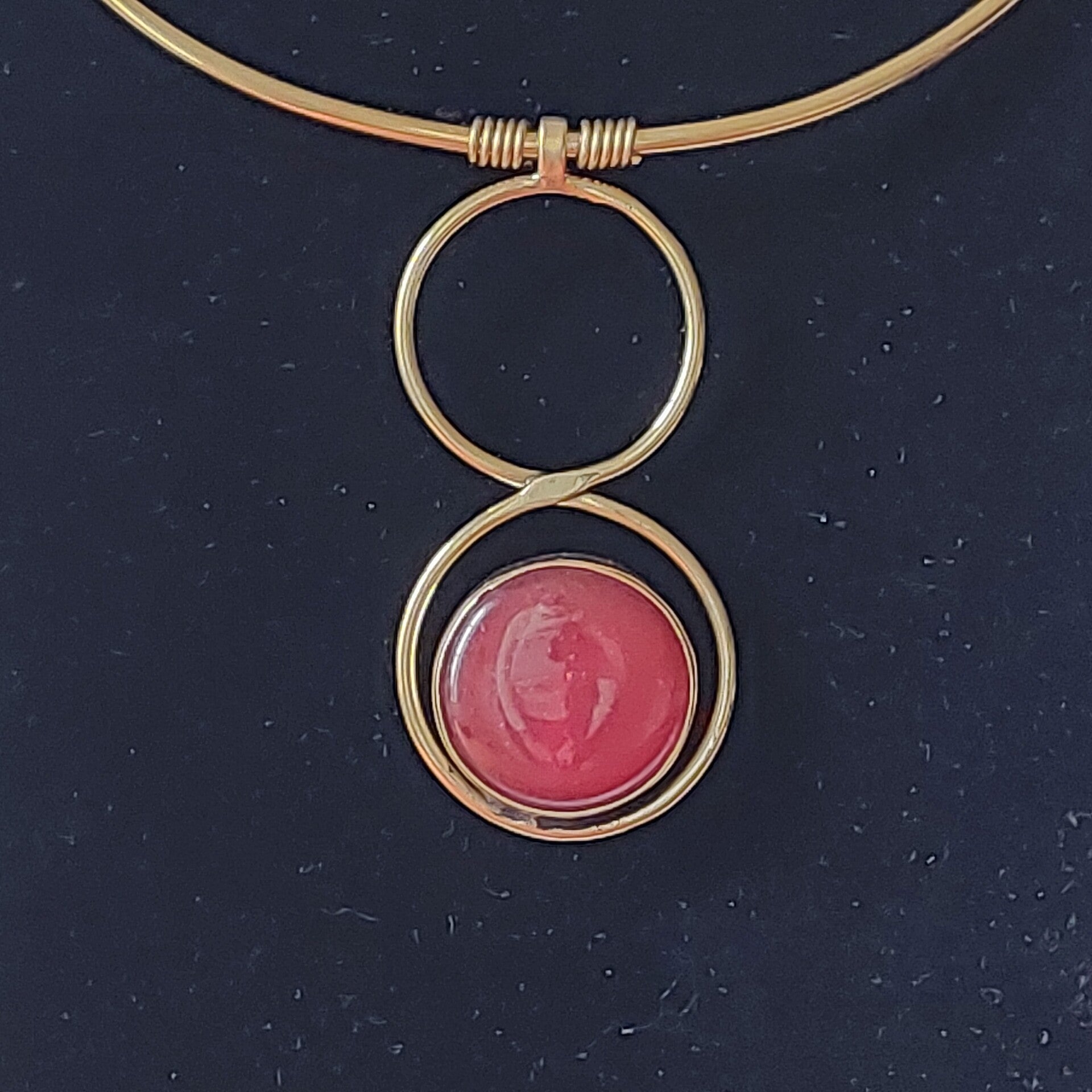 hals sieraad van messing met ronde rode glassteen handgemaakt duurzaam gerecycled glas
