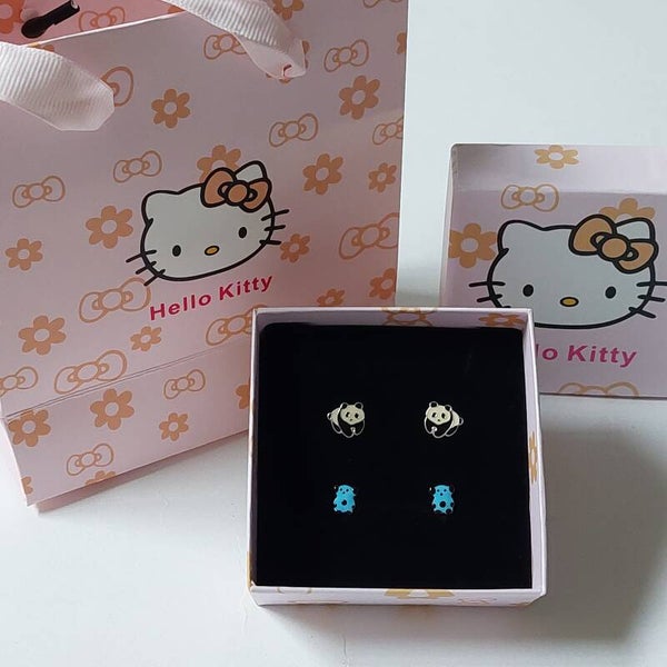echt zilveren oorknopjes blauwe pokemon panda beertjes kinder oorbellen 925 meisjes set cadeauset geschenkverpakking
