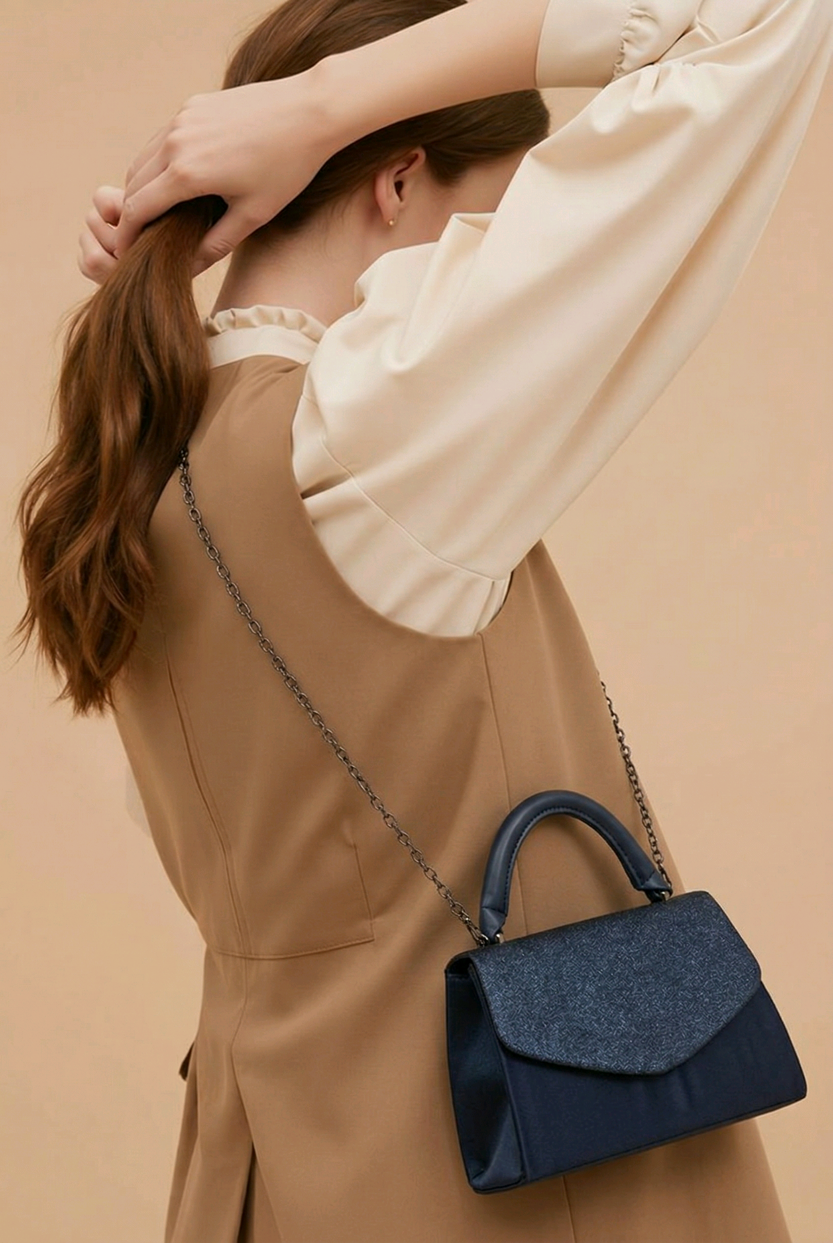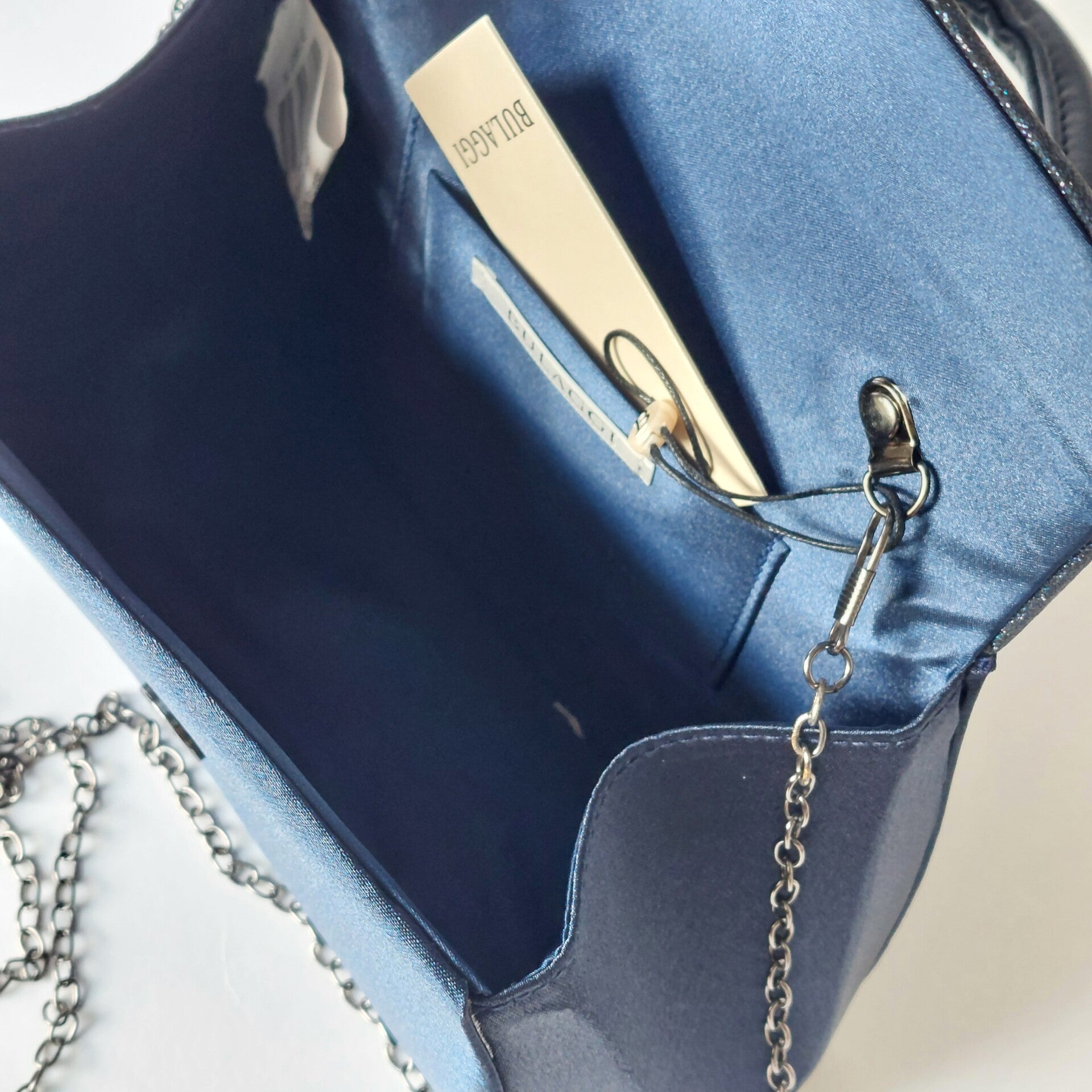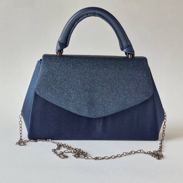onkerblauwe avondtas met luxe pu leren handvat en schouderketting, perfect voor bruiloften, gala’s en feestelijke gelegenheden. ruim genoeg voor je essentials zoals telefoon, make-up en sleutels, en tegelijkertijd elegant en stijlvol. een tijdloze tas die elke outfit een chique uitstraling geeft.