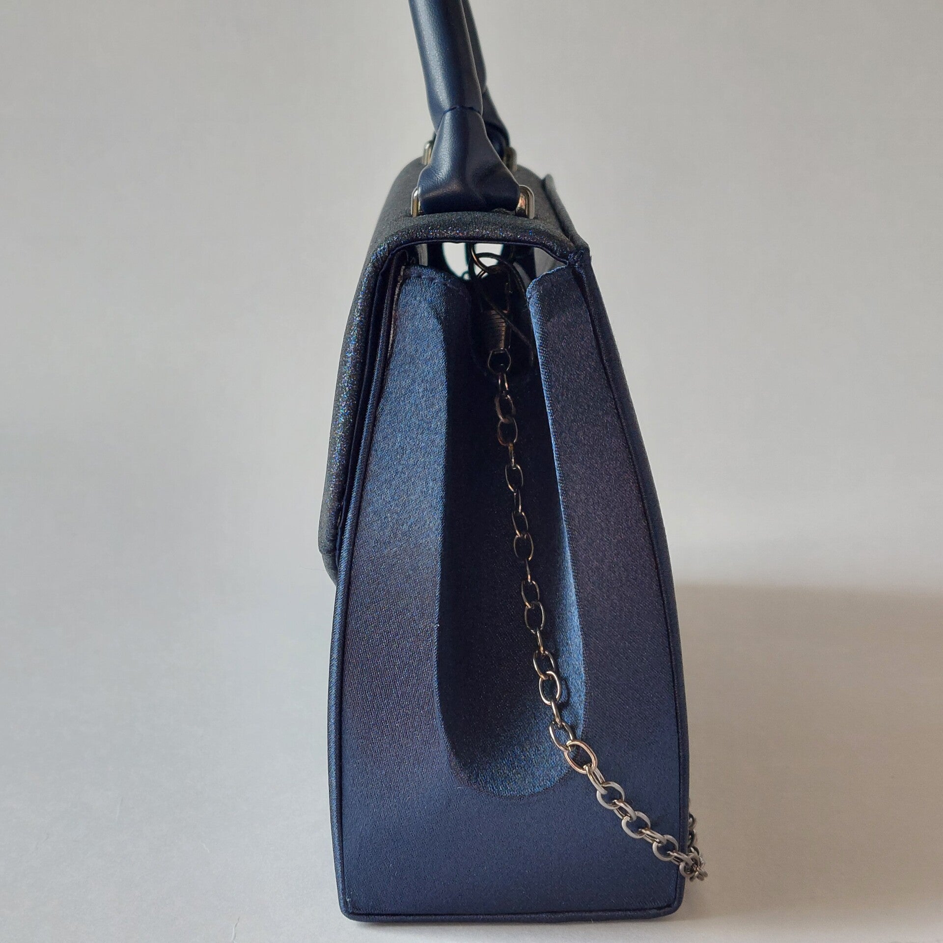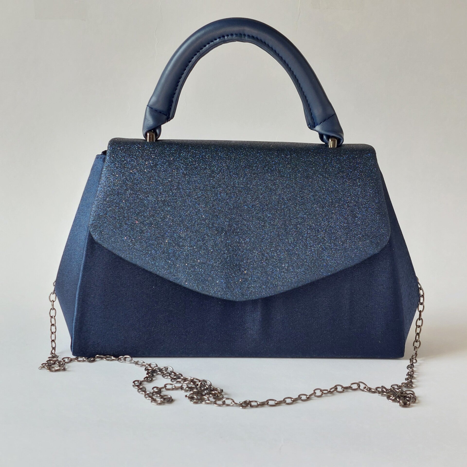 avondtas donkerblauw met pu leren handvat en afneembare schouderketting – ruime en elegante tas dames voor bruiloft, gala & feest