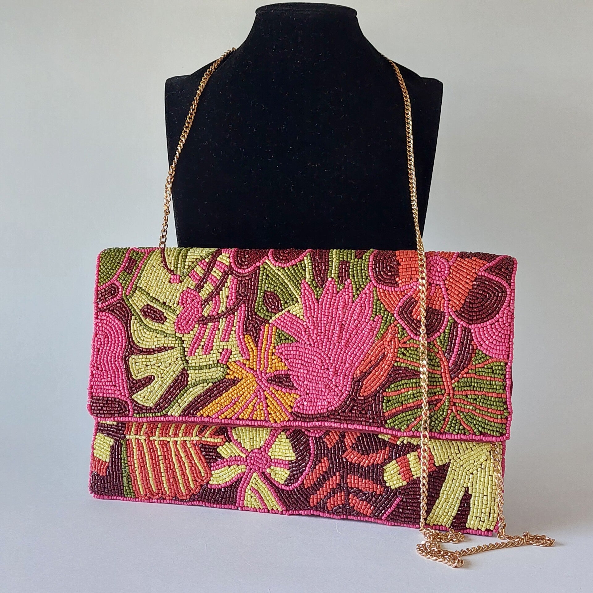 handgemaakte clutch tas met bloem motief afgewerkt met pailletten en borduursel een unieke avondtas voor feest bruiloft of speciale gelegenheden echte eye catcher.